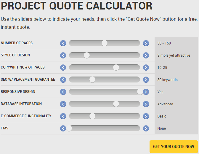 在我们的网站上,我们使用报价计算器帮助访客更好地了解我们的服务。