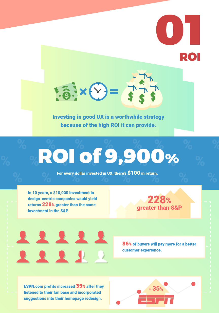 当你投资于一个强大的、有价值的用户体验策略时,你的投资回报率会显著增加。