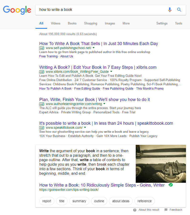 如果你在谷歌上输入搜索,你很有可能会看到一个框弹出你的答案。有几个不同的名字浮动在这些,如答案框,和其他。然而,谷歌称之为特色片段,这就是我们所说的。下面是一个特色片段的示例: