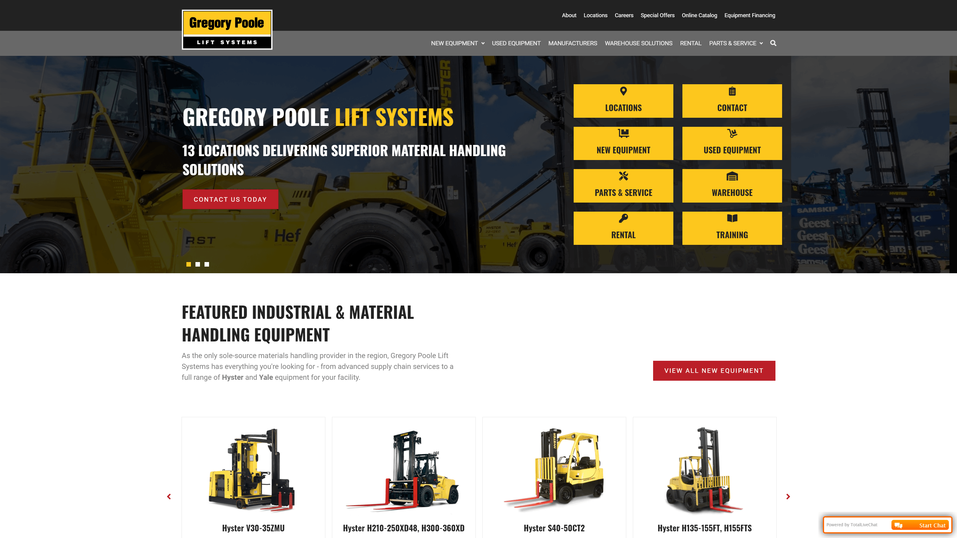 作为该地区唯一的材料处理供应商,Gregory Poole Lift Systems拥有您所需要的一切——从先进的供应链服务到海斯特和耶鲁的全套设备。