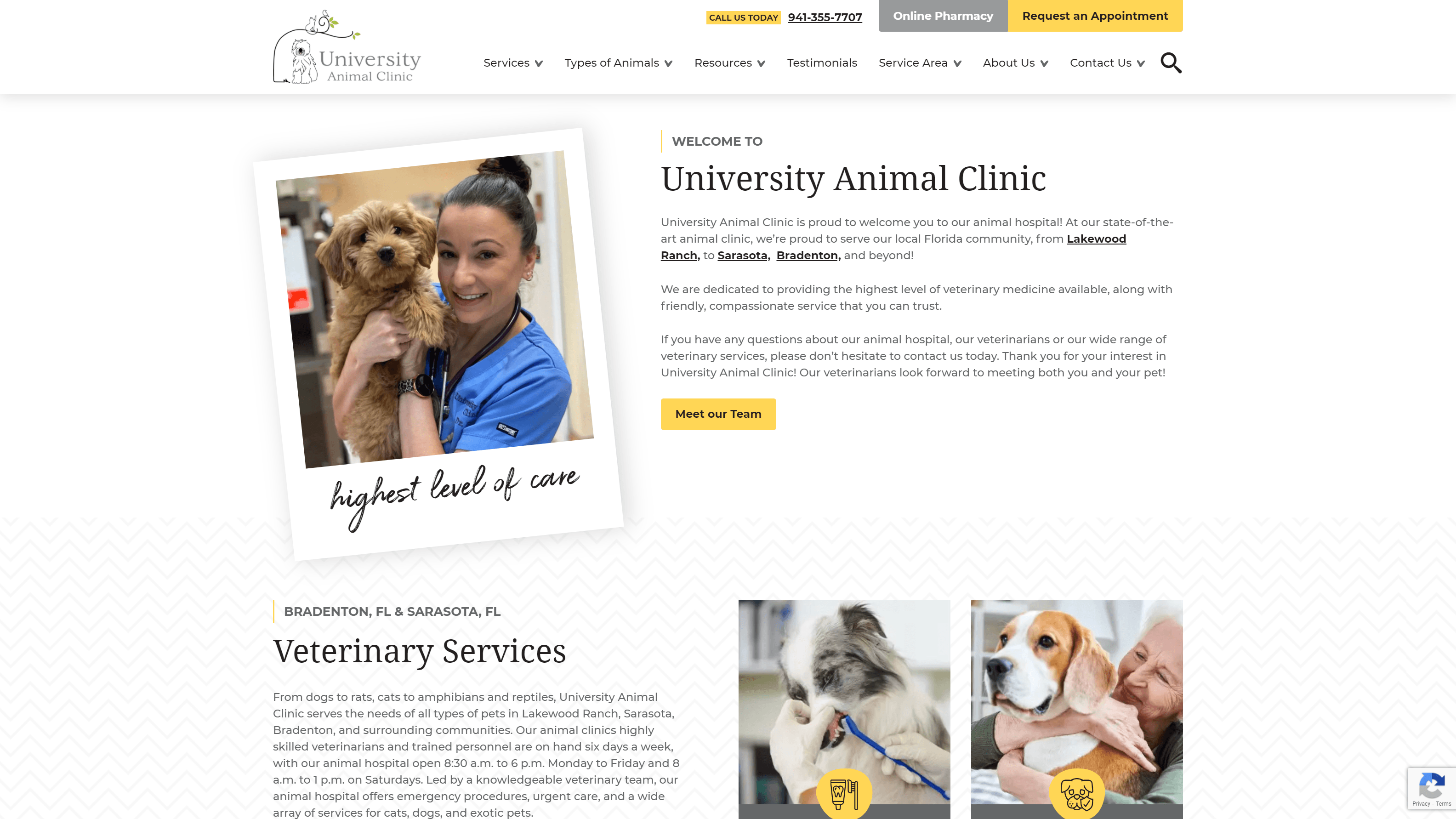 在我们最先进的动物诊所,我们很自豪地服务我们的当地佛罗里达州社区,从莱克伍德牧场,萨拉索塔,布雷登顿,以及更多!