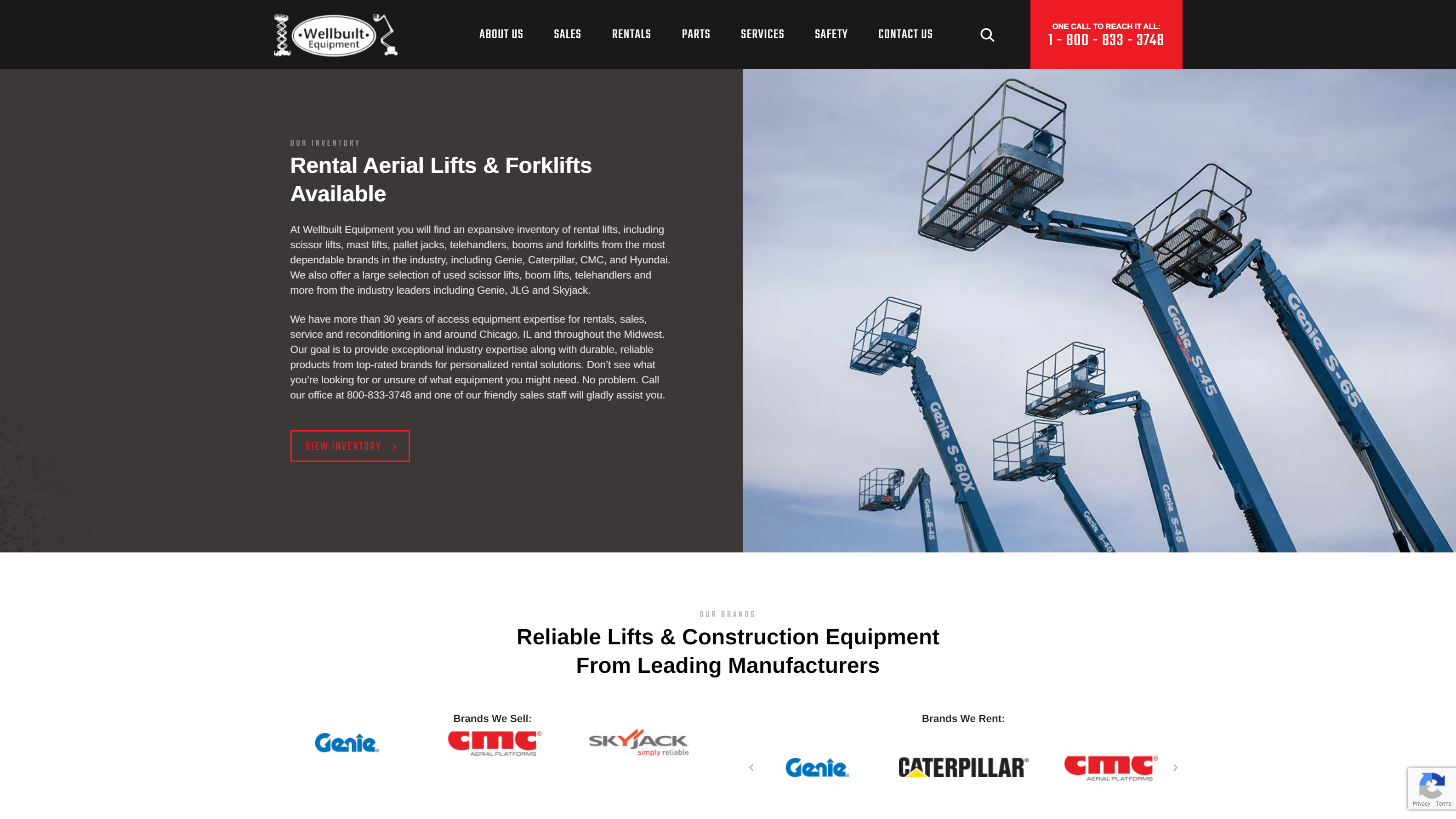 在Wellbuilt Equipment,你会发现一个广阔的租赁电梯库存,包括剪刀式升降机、桅杆式升降机、托盘千斤顶、远程装卸机、吊杆和叉车,这些都来自行业中最可靠的品牌,包括Genie、Caterpillar、CMC和Hyundai。